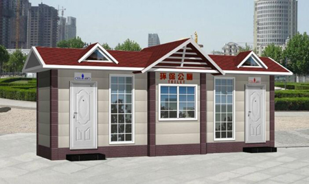 用金屬雕花板或鋁塑板,環保廁所其色彩不亂、沖水噴洗即可除塵,不褪色、不剝落;抗紫外線輻射和水汽酸堿腐蝕,不宜老化;具有韌性、不易損壞,隔音隔熱機能強,抗外力沖擊不易碎裂破損;自熄阻燃達到難燃級尺度。